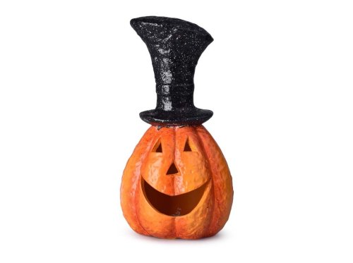 Tato keramická dýně s kloboukem je krásným a detailně zpracovaným kouskem, který přinese do vašeho domova podzimní atmosféru a radost. Její výrazný design a možnost osvětlení LED diodou z ní dělají skvělý doplněk pro oslavy Halloweenu nebo jako dekoraci po celý podzim.