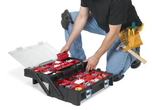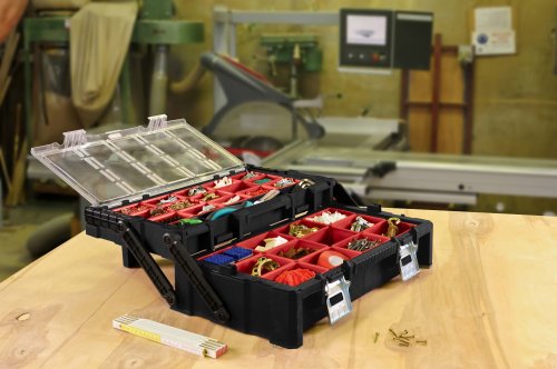 Praktický organizér s velkým objemem. Její rozdělená vnitřní část a podnosy, které exponují nářadí, výrazně usnadňují práci. Díky pohodlnému držadlu lze skříňku bez problému přenášet. Produkt byl vyroben z vysoce kvalitních materiálů, což zajišťuje jeho stálost a odolnost.