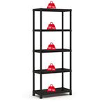 Regál obsahuje celkem 5 polic s velkou nosností, které unesou i výrazně těžší předměty všeho druhu. Lze ho tedy využít pro skladování dílenského nářadí či zahradnických potřeb, kdy přijde vhod pro uložení náčiní, které by se jinam nevešlo. Regál rovněž můžete přimontovat na zeď pro větší stabilitu. Díky svému provedení v univerzální černé barvě vhodně doplní každý prostor.