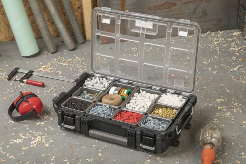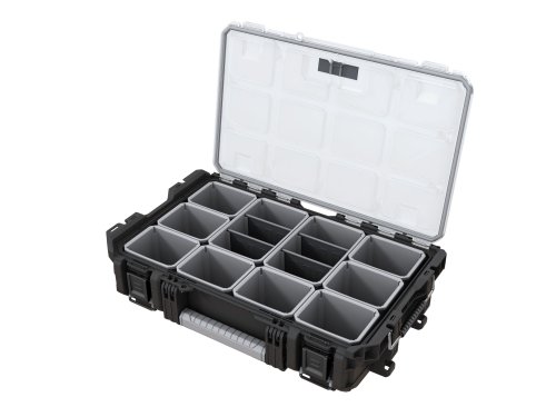 Se svým kompaktním designem a pevnou konstrukcí vyhovuje organizér ROC Pro Gear 1.0 profesionálům, kteří hledají funkční, přenosný a odolný organizér, který zvládne svou práci každý den. Tento profesionální organizér, vyrobený z odolné pryskyřice s vysokým nárazem, má kovovou západku a tři držadla, které nabízí několik možností nošení. Obsahuje 8 malých a 2 široké vyjímatelné nádoby pro rychlý přístup při práci. Tento organizér je díky těsnění odolný vůči vodě a prachu, a umožní Vám tak pracovat za všech druhů povětrnostních podmínek. ROC Pro Gear 1.0 Organizer je kompatibilní s modulárním a stohovatelným Professional Tool Storage System 1.0 a 2.0 (kromě kompaktního organizéru).