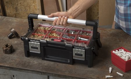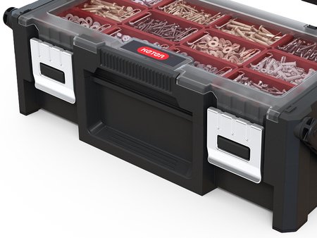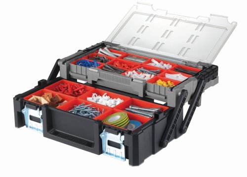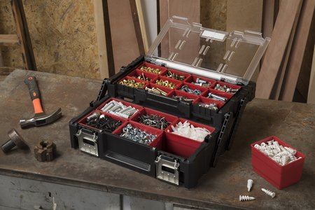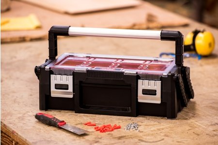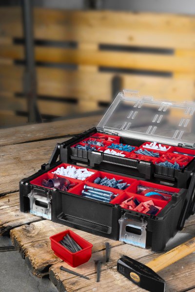 Pevný a odolný box na nářadí nabízí dokonalou organizaci nástrojů a malých dílů. Dvě patra se jednoduše rozloží během okamžiku díky chytrému designu. Skladujte své díly ve 12 zásobnících v horním patře a v 6 hlubších v patře dolním. Zásobníky usnadňují pohodlné rozmístění nářadí a příslušenství různé velikosti. Vše vidíte na první pohled. Všechny zásobníky jsou vyjímatelné. Kovové západky umožňují efektivní zavírání a otevírání. Produkt je vyroben z vysoce kvalitních materiálů, což zajišťuje jeho stálost a odolnost.