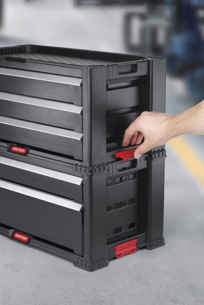 5zásuvková skříňka na nářadí na otočných kolečkách. Obsahuje hlubokou zásuvku s vyjímatelnými přepážkami na větší a těžší nářadí. Další 4 zásuvky na jiné nářadí, příslušenství a menší předměty. Každá sada je vybavena 16 vyjímatelnými boxy. Praktická police s velkým objemem, která umožní uložit nářadí různé velikosti do praktických přihrádek. Výrobek disponuje 5 objemnými zásuvkami, což umožňuje seskupování předmětů. Hluboká zásuvka s vyjímatelnými přepážkami usnadňuje skladování větších a těžších nástrojů. Ostatní 4 zásuvky jsou určeny na jiné nástroje, menší předměty a doplňky. K polici je přiloženo 16 vyjímatelných boxů na nářadí, určených k skladování menšího příslušenství.