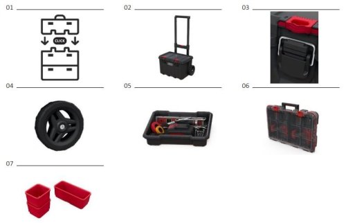 Praktický a prostorný kufr je vybaven teleskopickou, pohodlnou rukojetí a kolečky, které zajistí snadnou a bezpečnou přepravu. Velká kapacita pro přehlednou organizaci všech druhů nástrojů, ale i elektrického nářadí větších rozměrů jako např. vrtačky, šroubováky apod.. K tomu box na nářadí s vyjímatelnou přihrádkou a přehledný organizér na příslušenství - ideální řešení do každé garáže či domácí dílny, které Vám usnadní udržování dokonalého pořádku a výrazně zvýší ergonomii práce.