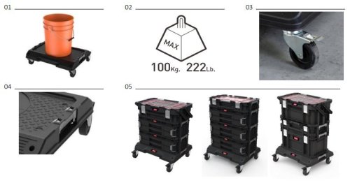 Lehký a odolný vozík Connect je navržen pro efektivní přepravu až 100kg nákladu. Zajistí tak mobilitu Vašeho vybavení pro kutily. Ať už se rozhodnete upevnit své Connect boxy a organizéry, nebo naložit 18litrový kbelík betonu, tento vozík to zvládne! Gumová kola přepraví Vaše vybavení bez námahy a brzdový systém zablokuje kola na místě, jakmile dosáhnou svého cíle.