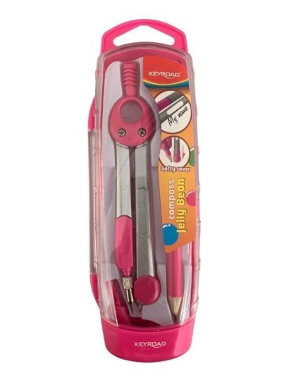 Kovové kružítko s držákem tuhy a univerzálním držákem vhodným pro tužku. Kružítko je vybaveno chránítkem ostrého hrotu zabraňující poranění nebo poškození penálu. Každé kružítko má na rameni plochu vhodnou k podepsání. Balení obsahuje kružítko, etui se 2 náhradními tuhami, krátkou grafitovou tužku a univerzální držák. Dodáváno v růžové barvě.