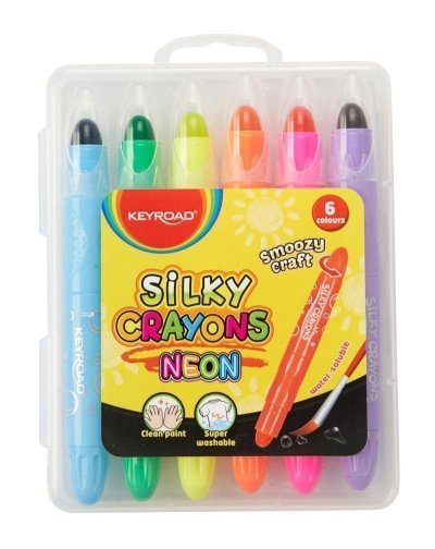 Gelové měkké pastely v neonových odstínech s praktickým šroubovacím mechanismem. Každý pastel je uložen v plastové tyčince, která chrání před zašpiněním rukou. Protiskluzový úchop zajistí pohodlné používání. Vysoká barevná intenzita bez nutnosti silného tlačení, není potřeba strouhání. Pastely jsou rozmyvatelné a vypratelné. Na hladkém povrchu lze snadno smýt. Praktická plastová krabička zajišťuje snadné uskladnění. Balení obsahuje 6 kusů pastelů v neonových barvách.