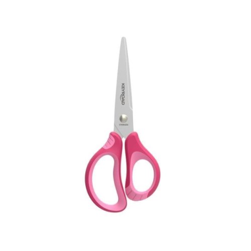 Školní nůžky s kulatou špičkou 15cm. Ergonomická a měkká rukojeť pro snadnější držení. Kvalitní ocelové nože. Dodáváno v růžové barvě.