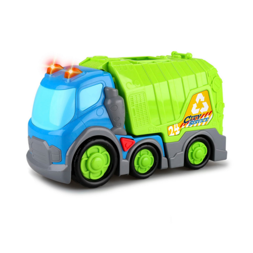 Kiddy Go! Popelářský vůz s efekty. Balení obsahuje auto o velikosti 31 cm, popelnici a pytle s odpadky. Auto nabízí světelné a zvukové efekty pro větší zábavu. Efekty se aktivují stiskem tlačítka na střeše kabiny. Kolečka na volnoběh. Auto vyžaduje 2xAA baterie, jsou součástí. Vhodné pro děti od 18ti měsíců.
