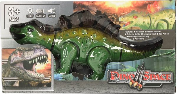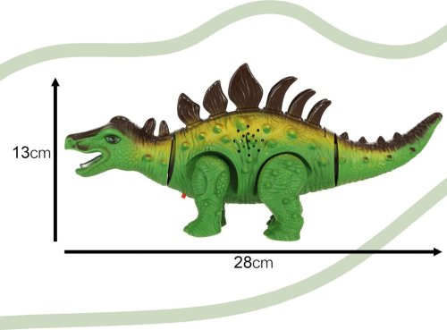 Rozměry: 28,5 cm x 13 cm x 8,5 cm Provoz na 3ks AAA 1,5V baterie. Baterie nejsou součástí výrobku. Poznámka: Balení obsahuje 1ks Stegosauruse.