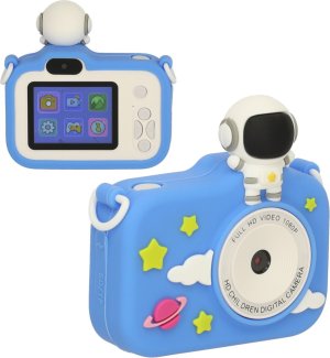 Sýýýr....cvak! Modrý digitální fotoaparát pro děti je skvělou volbou pro malé nadšence do fotografování. Fotoaparát nabízí několik funkcí: pořizování fotografií, nahrávání videí, hry, galerii a hudební přehrávač. Intuitivní tlačítka umožňují snadné přepínání mezi režimy. Fotoaparát je vybaven 2'' barevným TFT displejem, který umožňuje pořizovat fotografie v rozlišení až 3 Mpx a nahrávat videa v kvalitě až 1440×1080. Širokoúhlý objektiv se 100° zorným polem zachytí mnoho detailů. Zařízení podporuje paměťovou kartu SD (součástí balení) s kapacitou až 32 GB, což poskytuje dostatek úložného prostoru pro fotografie a videa. Nabíjení probíhá přes USB kabel. Gumové pouzdro ve tvaru astronauta chrání zařízení v případě pádu. Fotoaparát podporuje rozvoj kreativity a tvůrčího myšlení. Technické specifikace: