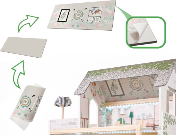 Vítejte v pohádkovém svítícím domečku se třemi patry , kde najdou oddech všechny panenky, plyšáci a figurky vašich dětí. Hra s domečkem podněcuje fantazii a podporuje správný rozvoj manuálních dovedností. Hraním různých rolí navíc dítě získá cenné sociální dovednosti. Domeček je navržen v Boho stylu , který se vyznačuje zejména kombinováním různých textur, přírodních materiálů a zemských barev. Záleží především na pohodlí a kreativitě.
