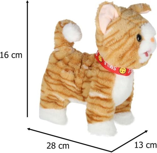 Učí děti zodpovědnosti, péči a empatii — díky realistickým funkcím se mohou cítit jako skutečný „páníček“. Kočka reaguje na dotek — při pohlazení po hlavě mňouká, hýbe ocáskem i jazykem. Chodí a hraje melodie — po stisknutí tlačítka na vodítku kočička chodí vpřed a přitom přehrává veselé anglické písničky. Pro provoz jsou potřeba 3ks baterie typu AA (nejsou součástí balení).
