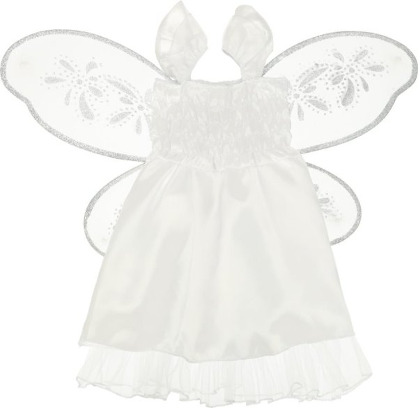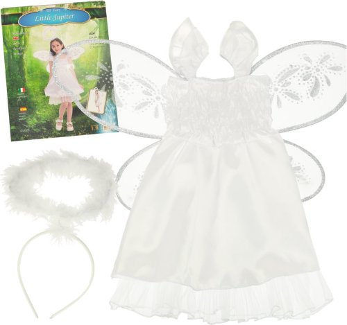 Dětský kostým ve velikosti M (110-120 cm). Sada obsahuje: šatičky, křídla, čelenku se svatozáří