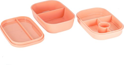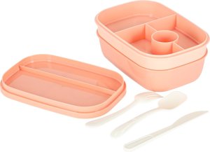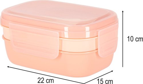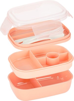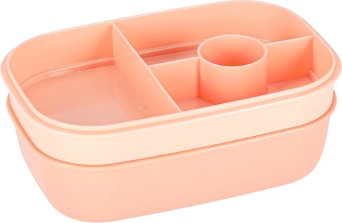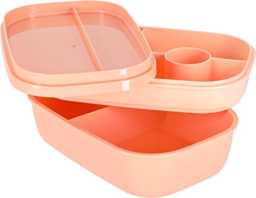 Lunch box s přepážkami 1900 ml - meruňková Praktický a prostorný lunch box s celkovou kapacitou 1900 ml a 8 přepážkami , který je ideální na oběd do práce, do školy nebo na cesty. Díky speciálním oddílům se jednotlivé potraviny nemíchají, součástí je i přihrádka na dip,jogurt a sada příborů (vidlička, lžíce, nůž) . Ergonomický design usnadňuje plánování jídel a podporuje zdravé stravovací návyky. Výhody produktu: