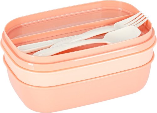 Obsah balení: třístupňový lunch box, vidlička, lžíce, nůž Rozměr: 22 x 15 x 10 cm