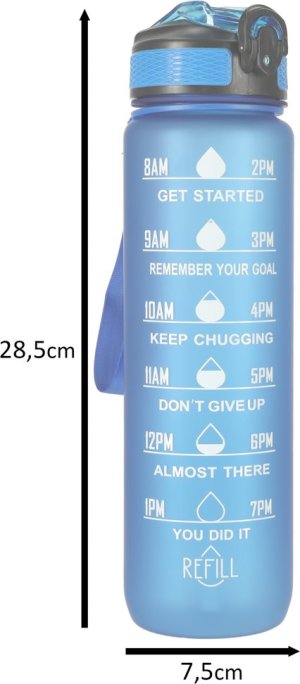 Získejte potřebnou motivaci pro nový den a současně dodržujte pitný režim. Bez ohledu na to, zda máte náročné zaměstnání nebo pravidelně cvičíte, je důležité udržovat správnou hydrataci. K tomu vám může pomoci tato láhev s inspirativními nápisy. Motivační citáty na láhvi vás povzbudí k tomu, abyste vypili celou láhev s vodou nebo jiným nápojem až do poslední kapky. Na láhvi najdete časy, kdy byste měli mít již určitou část vypitou, spolu s pěkným motivačním heslem.