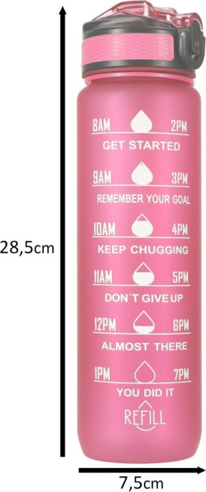 Získejte potřebnou motivaci pro nový den a současně dodržujte pitný režim. Bez ohledu na to, zda máte náročné zaměstnání nebo pravidelně cvičíte, je důležité udržovat správnou hydrataci. K tomu vám může pomoci tato láhev s inspirativními nápisy. Motivační citáty na láhvi vás povzbudí k tomu, abyste vypili celou láhev s vodou nebo jiným nápojem až do poslední kapky. Na láhvi najdete časy, kdy byste měli mít již určitou část vypitou, spolu s pěkným motivačním heslem.