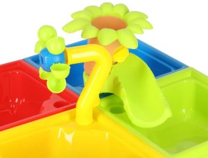 oddělené zóny na vodu a písek vodní skluzavka dovoluje ovládat její směr a experimentovat s tokem vody hraní umožňuje Vašemu dítěti učit se principům fyziky a rozvíjet logické myšlení