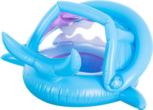 nafukovací kruh se stříškou: 96 x 78 x 70 cm, vnitřní průměr: 25 cm, průměr otvoru pro nohy: 10 cm, výška stříšky od sedátka: 40 cm, nosnost: max 23 kg.