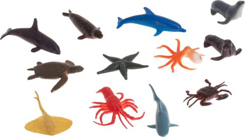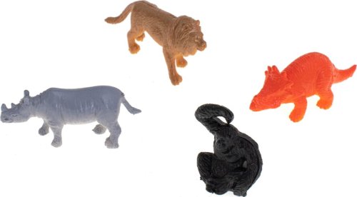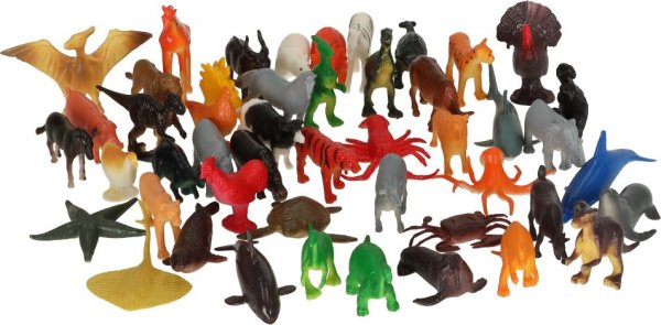 Obsah balení: 12 dinosaurů, 12 hospodářských zvířat, 12 safari zvířat, 12 mořských živočichů.