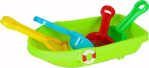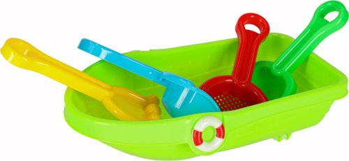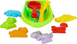 Sada na písek zabaví děti na zahrádce, na pískovišti i na písečné pláži. Obsahují šest formiček ve tvaru zvířátek, 2 lopatky, hrábě, síto, loďku a vodní pistoli. Díky příslušenství je snadné stavět pískové stavby, rozvíjet jemnou motoriku a podněcovat fantazii. Technické specifikace: