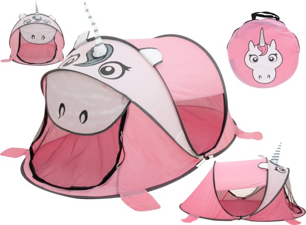 Vyroben z odolného materiálu. Můžete jej postavit doma nebo venku za pěkného počasí, hodí se i na pláž jako úkryt před sluncem. Rozvíjí dětskou fantazii. Zpestří hraní s kamarády a dalšími členy domácnosti. Díky lehké konstrukci jej můžete přenášet z místa na místo. Samorozkládací. Součástí balení je praktická taška pro snadné skladování a přepravu stanu.