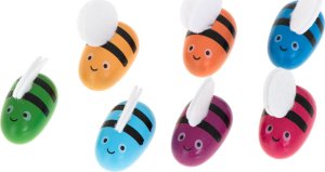 Obsah balení: 7 barevných dřevěných včel, dřevěný herní podstavec, červená plastová pinzeta. Rozměry podstavce : 16,5 x 13,5 x 3,5 cm