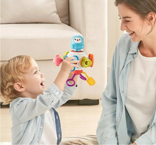 obsahuje osm panelů aktivit, které stimulují smysly dítěte a rozvíjejí motorické dovednosti, vyrobená z vysoce kvalitních materiálů a navržená s ohledem na vývoj a bezpečnost dítěte, pomáhá rozvíjet motorické dovednosti dítěte tím, že chytá, tahá, otáčí a mačká různé prvky, jasné a živé barvy kostky spolu s různými tvary, texturami a zvuky poskytují smyslovou stimulaci a podporují rozvoj motorických dovedností a koordinace ruka-oko.