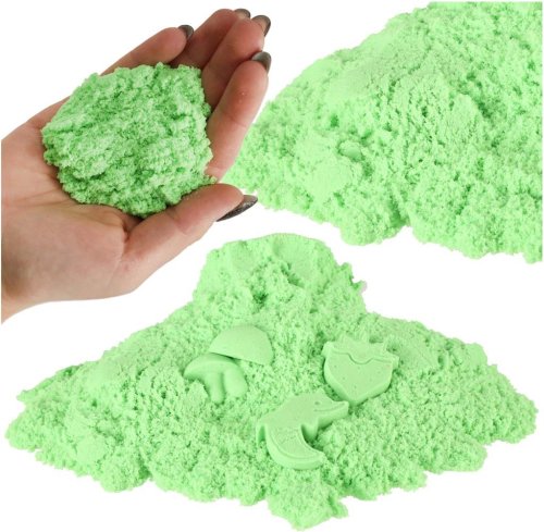Zelený kinetický písek je ideální pro kreativní hraní doma! Je práškový a přesto „mokrý“ a nikdy nevysychá. Můžete si s ním hrát stejně jako s běžným pískem z pískoviště nebo mokrým pískem z pláže – s jedním důležitým rozdílem: kinetický písek nešpiní ruce, nezanechává mokré stopy a snadno se čistí. Hra s pískem zabaví děti na hodiny a zároveň rozvíjí jejich kreativitu a manuální dovednosti. Balení obsahuje 1kg kinetického písku. Kinetický písek je vyroben z kombinace písku a netoxického polymeru. Má CE certifikaci. Výrobek je balen v plastovém sáčku.