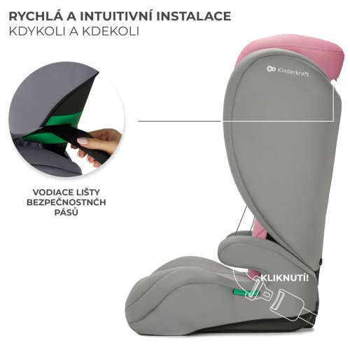 Univerzální Montáž na 3-bodový bezpečnostní pás je rychlá a bezproblémová: autosedačku můžete namontovat do jakéhokoli vozidla, dokonce i do starších modelů bez systému ISOFIX. Autosedačka je navíc lehká, takže ji lze snadno přenášet z auta do auta, např. když jedete na dovolenou nebo dítě zůstává s rodinou delší dobu. Pás můžete snadno protáhnout vodítky na opěrce hlavy a pod loketní opěrkou, abyste se ujistili, že jste dítě připoutali správně.