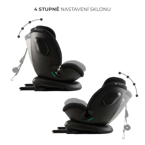 Nastavení sklonu v obou polohách Funkce RECLINING umožňuje nastavení zádové opěrky autosedačky pomocí 4-stupňového nastavení úhlu sklonu sedadla v poloze RWF i FWF, což umožňuje dítěti zaujmout pohodlnou polohu během spánku nebo při aktivitě.