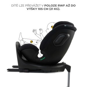 Autosedačka EASY SPIN 360° Systém EASY SPIN 360° umožňuje snadné otočení sedačky směrem ke dveřím auta jednou rukou. Bude pro vás pohodlněji ukládat dítě do autosedačky a také usnadní připoutání miminka pomocí pětibodového vnitřního bezpečnostního pásu. Systém umožňuje rychlou změnu polohy z RWF na FWF bez nutnosti vybírat autosedačku z auta.