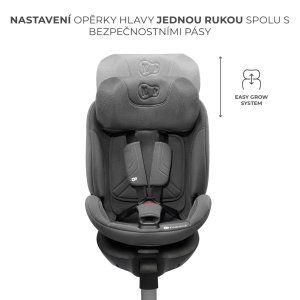 Autosedačka EASY SPIN 360° Systém EASY SPIN 360° umožňuje snadné otočení sedačky směrem ke dveřím auta jednou rukou. Bude pro vás pohodlněji ukládat dítě do autosedačky a také usnadní připoutání miminka pomocí pětibodového vnitřního bezpečnostního pásu. Systém umožňuje rychlou změnu polohy z RWF na FWF bez nutnosti vybírat autosedačku z auta.