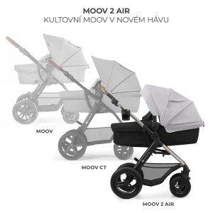 Jednoduché rodičovství v neustálém pohybu? Je to možné - seznamte se s MOOV 2 AIR, multifunkčním kočárkem 3 v 1 navrženým pro rodiče, kteří ocení praktickou eleganci a funkčnost. Vyznačuje se především transformovatelnou sedačkou 2 v 1: během několika okamžiků přeměníte prostornou korbu na pohodlný kočárek. Ušetříte tak místo pro uložení samostatné korby, když z ní vaše dítě vyroste a je čas přejít na sportovní kočárek.