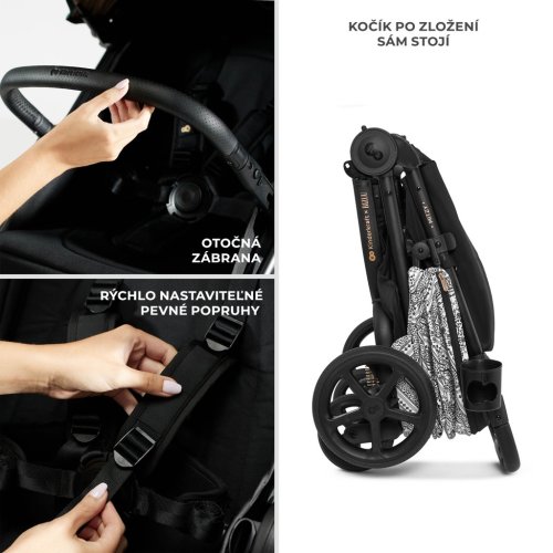 Rychlé skládání MITZY se skládá do kompaktní velikosti jednou rukou. Systém skládání dovnitř chrání látku sedáku před znečištěním. Kočárek je lehký, takže jej snadno vynesete po schodech, a jeho kompaktní rozměry ve složeném stavu vám umožní uložit kočárek do auta spolu se zavazadly.