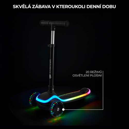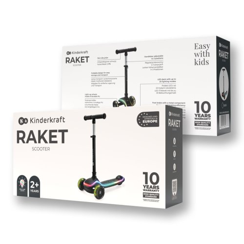 Zábava a bezpečnost během celého dne. RAKET je dětská koloběžka s intuitivním ovládáním pomocí náklonu těla, která podporuje rozvoj rovnováhy a koordinace. Díky svítící LED plošině a RGB kolečkům je jízda nejen vzrušující, ale také bezpečnější po setmění. Koloběžka je ideální pro první jezdecké zkušenosti – s jednoduchým skládáním, nastavitelnou výškou řídítek a hladkou jízdou na každém povrchu.