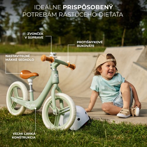 Rychlé, lehké a dobře ovladatelné, právě takové je dětské odrážedlo FLY PLUS. Pastelové barvy a lehký rám potěší jak malé příznivce výletů do města, tak i jejich rodiče. FLY PLUS je odrážedlo propracované v každém detailu, které se vyznačuje retro designem a lehkými koly z nepropíchnutelné pěny. Ergonomické sedadlo s měkkou výplní umožní dítěti pohodlnou i tu nejbláznivější jízdu po nerovnostech! Sedadlo má velký rozsah nastavení, jeho výšku můžete přizpůsobit jak pro malé dvouletého, tak i pro vyšší starší dítě. Tříkolka FLY PLUS má omezený úhel otáčení řidítek, který dítě ochrání během hraní před nekontrolovaným otáčením a pádům.