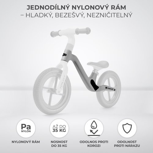 Odolné dětské kolo do všech podmínek / procházka v každých podmínkách Dětské odrážedlo XPLOIT snese jakékoli podmínky při procházce. Je vyrobeno z lehkého odolného nylonu: jednodílný rám je odolný vůči korozi a nárazům a zároveň má hladkou povrchovou úpravu, takže je bezpečné a pohodlné pro děti. Samotné dětské kolo je lehké (rám váží necelé 1 kg) a má sportovní styl, bude jako stvořený pro každého malého sportovce.