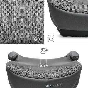 Kinderkraft I-BOOST 2 PRO je moderní podsedák navržený pro starší děti, který kombinuje vysokou úroveň bezpečnosti podle normy R129 i-Size s komfortem pro každodenní používání. Je určen pro děti vysoké 125–150 cm, přibližně ve věku 6 až 12 let. Praktické řešení, které roste spolu s dítětem a poskytuje ochranu i pohodlí v každé fázi cestování. Model se vyznačuje stabilní instalací ISOFIX, která umožňuje rychlé a bezpečné upevnění autosedačky do vozidla. Široké a měkké sedátko s pěnovou výplní, v kombinaci s prodyšným potahem AIR FLOW, zaručuje maximální komfort i během delších cest. Ergonomické opěrky rukou zvyšují pohodlí, zatímco praktické vodící prvky pásu pomáhají správně umístit bezpečnostní pás. I-BOOST 2 PRO má lehký a kompaktní design, který usnadňuje každodenní používání, a díky odnímatelnému potahu je čištění rychlé a snadné.