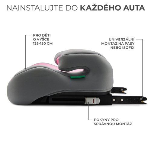 I-BOOST I-SIZE je základna do auta pro děti, které vyrostly z autosedačky, ale jsou nižší než 150 cm. Dokonale se přizpůsobí výšce dítěte v rozmezí 135-150 cm a zajistí, aby pásy autosedačky vedly přesně tam, kam mají - přes střed ramen a hrudníku. Zajištění optimálního vedení pásu auta proti tělu dítěte minimalizuje riziko zranění v případě neočekávaných nehod na silnici. Díky I-BOOST I-SIZE máte jistotu, že se vaše dítě přepravuje bezpečně a pohodlně. Důležité je, že základna do auta I-BOOST I-SIZE byla testována v souladu s nejnovější normou R129 i-Size, a proto prošla přísnými testy.