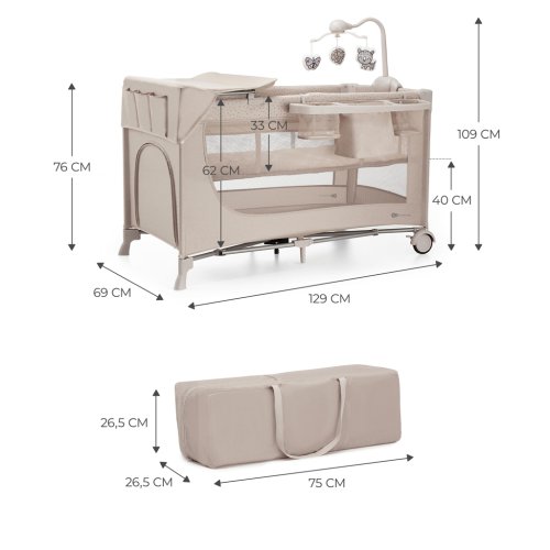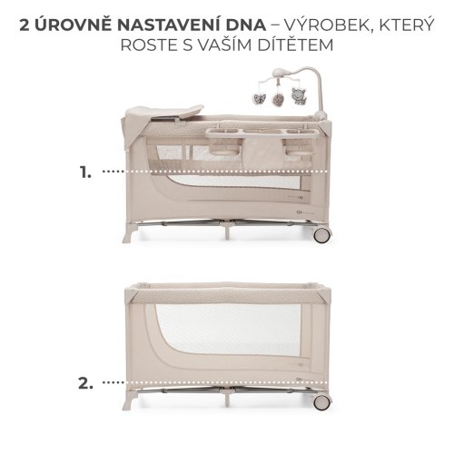 Cestovní postýlka JOY je skvělým řešením pro všechny rodiče, kteří často cestují. Lehce se skládá do kompaktní velikosti, je lehká a odolná a v sadě se dodává s pohodlnou přenosnou taškou. Je dokonalá i pro každodenní použití. Je ideální pro relaxaci a spánek. Tato postýlka je skutečným „operačním střediskem“ s mnoha vymoženostmi a příslušenstvím. Obsahuje systém rychlého skládání a rozkládání a dvojitou ochranu proti samovolnému složení.