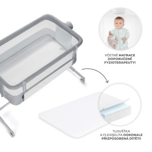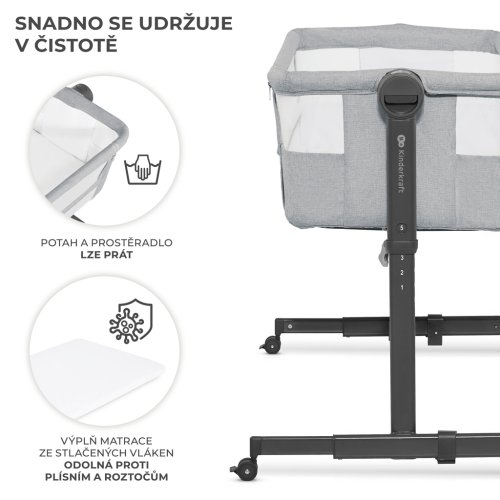 Tato multifunkční postýlka má až 5 výškových úrovní, díky tomu ji můžete snadno přizpůsobit výšce svého lůžka. Umožňuje také nastavení úhlu náklonu matrace do jedné ze dvou úrovní – což je spásná volba pro děti, které často ublinkávají nebo jsou nemocné a mají rýmu. Síťka kolem celé postýlky vám umožní diskrétně sledovat, co vaše dítě v danou chvíli dělá, a díky 4 kolečkům můžete postýlku NESTEE UP 2 snadno přemisťovat z místa na místo. Kromě toho je postýlka dodávána s matrací, která má správnou tloušťku a hustotu doporučenou pro novorozence – zajišťuje správnou polohu těla dítěte během spánku, má pozitivní vliv na jeho vývoj a je odolná vůči plísním a roztočům.