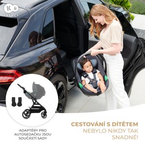 Ke kočárku patří také řada praktického příslušenství, jako je moskytiéra, pláštěnka, držák na nápoje, taška na rukojeť pro rodiče a adaptéry na autosedačku. Pokud již máte dětskou autosedačku, můžete z ní díky adaptérům vytvořit TRAVEL SYSTEM. A to vše v jednom kočárku!