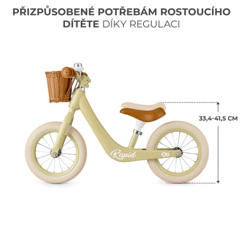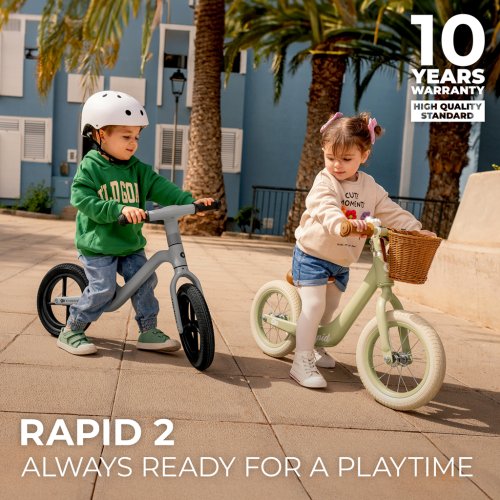 Pohodlné sedlo umožňuje široký rozsah nastavení výšky, takže kolo roste spolu s vaším dítětem. Kolo RAPID má také omezení obratu říditek, které chrání dítě před nekontrolovaným zatáčením při učení jízdy. A nízko posazený rám usnadňuje nasedání a sesedání. Balanční kolo RAPID, stejně jako každé jiné balanční kolo Kinderkraft, podporuje rozvoj rovnováhy a motoriky. Zároveň ve vašem dítěti vzbudí lásku k venkovním aktivitám.
