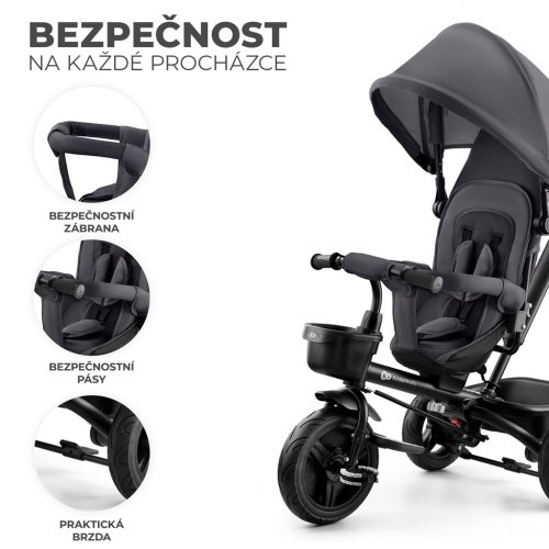 Otočné sedadlo Sedadlo můžete otočit dopředu nebo dozadu. Díky tomu je dětské kolo vhodné pro děti od asi 9 měsíců věku. Bude neocenitelným společníkem na každou procházku a až vaše ratolest vyroste, můžete AVEO snadno proměnit v samostatnou tříkolku.