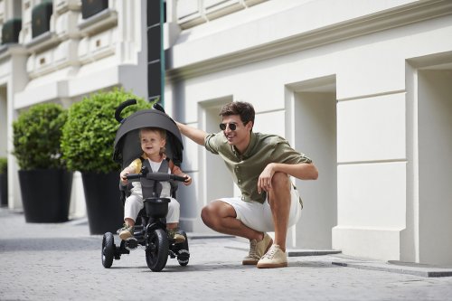 Otočné sedadlo Sedadlo můžete otočit dopředu nebo dozadu. Díky tomu je dětské kolo vhodné pro děti od asi 9 měsíců věku. Bude neocenitelným společníkem na každou procházku a až vaše ratolest vyroste, můžete AVEO snadno proměnit v samostatnou tříkolku.