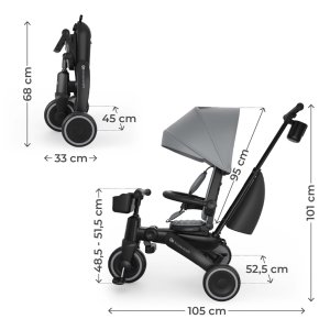 Kinderkraft JAZZ 3 kombinuje tříkolku vedenou rodičem s fází učení samostatné jízdy. Díky 6 režimům používání se model přizpůsobuje vývoji dítěte - od jízdy proti směru s kontrolou rodiče, přes samostatné šlapání až po režim odrážedla. Tříkolka odpovídá potřebám rodin v různých etapách vývoje dítěte.