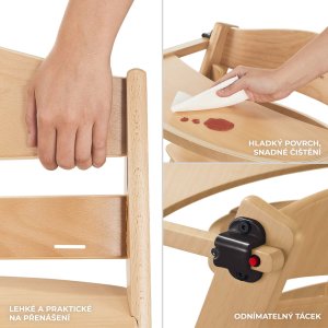 Existuje vůbec jídelní židlička, která bude sloužit vašemu dítěti několik let? Ano! Právě takovou židlí je ENOCK. Tento nadčasový kus nábytku je bezpečnou a praktickou vysokou jídelní židličkou i ergonomickou židlí pro starší děti. Jak je to možné? Výška sedáku a opěrky nohou je nastavitelná, což usnadňuje nastavení židle podle věku dítěte. ENOCK je navržena s ohledem na vaši rodinu - je to vysoká židle, která se bude hodit k interiéru vašeho domova a pak bude sloužit vašemu dítěti jako hrací židle nebo ke židle ke stolu. A co víc, můžete ji snadno přizpůsobit ke stolu v kuchyni, jídelně nebo v obývacím pokoji. Díky tvarovanému opěradlu bude dítě udržovat správné držení těla při jídle a bude také moci trávit čas společně s dospělými u stolu.