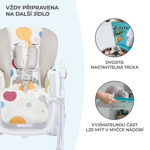 Jídelní židlička vhodná pro děti od 6 měsíců do 3 let.