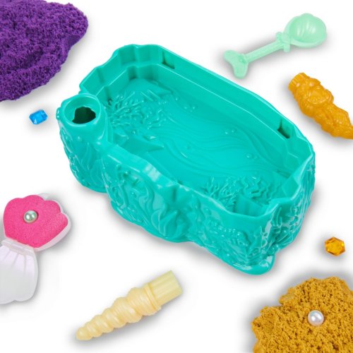 Sada Korálový útes obsahuje stříbrný, zlatý a třpytivý písek (500 g). Objevuj nástroje, formičky, perly a drahokamy s motivem mořské panny. Najdi 6 ukrytých překvapení. Vhodné od 3 let.